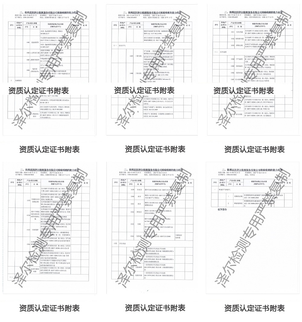 本公司通过CMA认证的室内空气检测项目共17项。检测对象包含:居民楼、教学楼、酒店等市内场所。